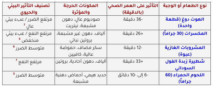 تؤكد هذه البيانات أن استبدال 10% فقط من السعرات الحرارية اليومية المستمدة من اللحوم الحمراء والمعالجة بمزيج من الحبوب الكاملة، والفواكه، والخضروات، والمكسرات، والبقوليات، يمكن أن يضيف 48 دقيقة من الحياة الصحية يومياً لكل فرد.(6) وفي المقابل، نجد أن استهلاك “هوت دوغ” واحد قد يكلف الشخص 36 دقيقة من حياته الصحية، بينما تمنح حصة من المكسرات زيادة قدرها 26 دقيقة.(4) هذا التباين الشاسع يعود إلى غنى الأطعمة النباتية بالألياف ومضادات الأكسدة وأحماض أوميغا-3 الدهنية، وهي عناصر تعمل بتناغم لتقليل الالتهابات وتحسين مستويات الدهون في الدم وحماية الحمض النووي من التلف.(2)