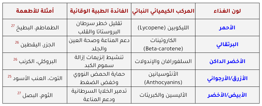 أما مبدأ “قوس قزح” في التغذية النباتية، فيسعى لتحقيق “التآزر الكيميائي النباتي” (Phytochemical Synergy). تحتوي النباتات على آلاف المركبات الحيوية التي تعمل معاً لتعزيز الصحة، حيث لا توفر المغذيات النباتية فوائدها بشكل منعزل، بل من خلال تفاعلات معقدة داخل الجسم.(25)